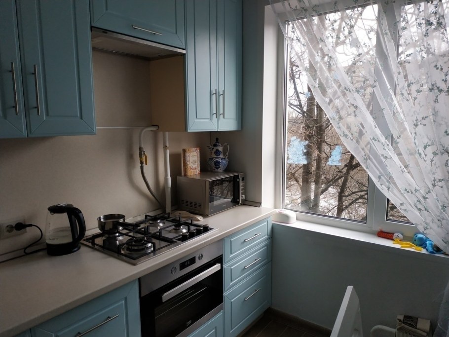 Голубая кухня в хрущевке
