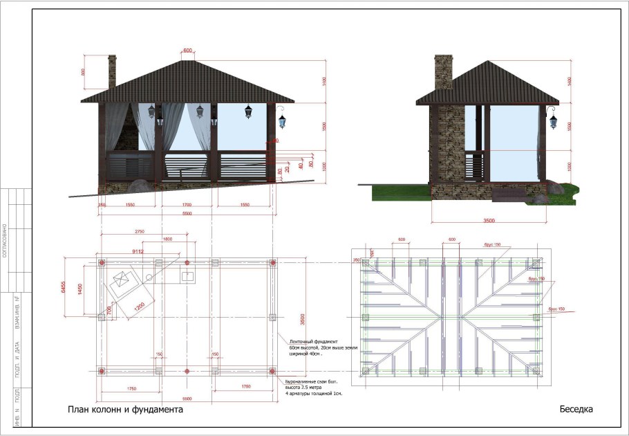 Проект беседки с мангалом 3х5 чертежи с размерами