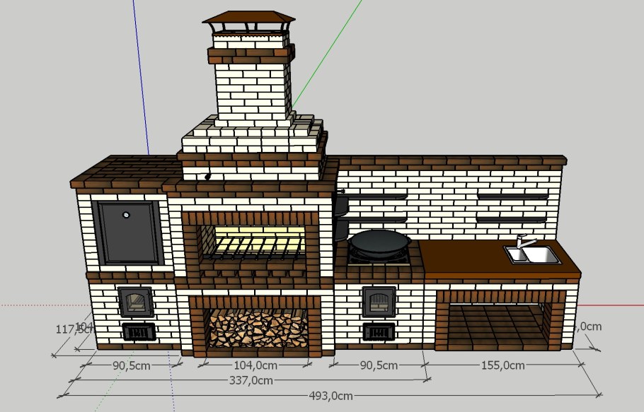 Печь для беседки из кирпича с мангалом и коптильней схема