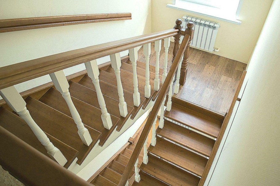 Лестница на второй этаж двухмаршевая с площадкой 180 градусов