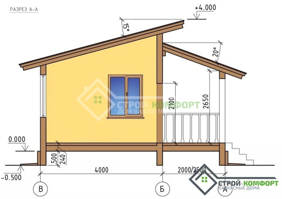Каркасный дом 6 на 4 с односкатной крышей чертеж