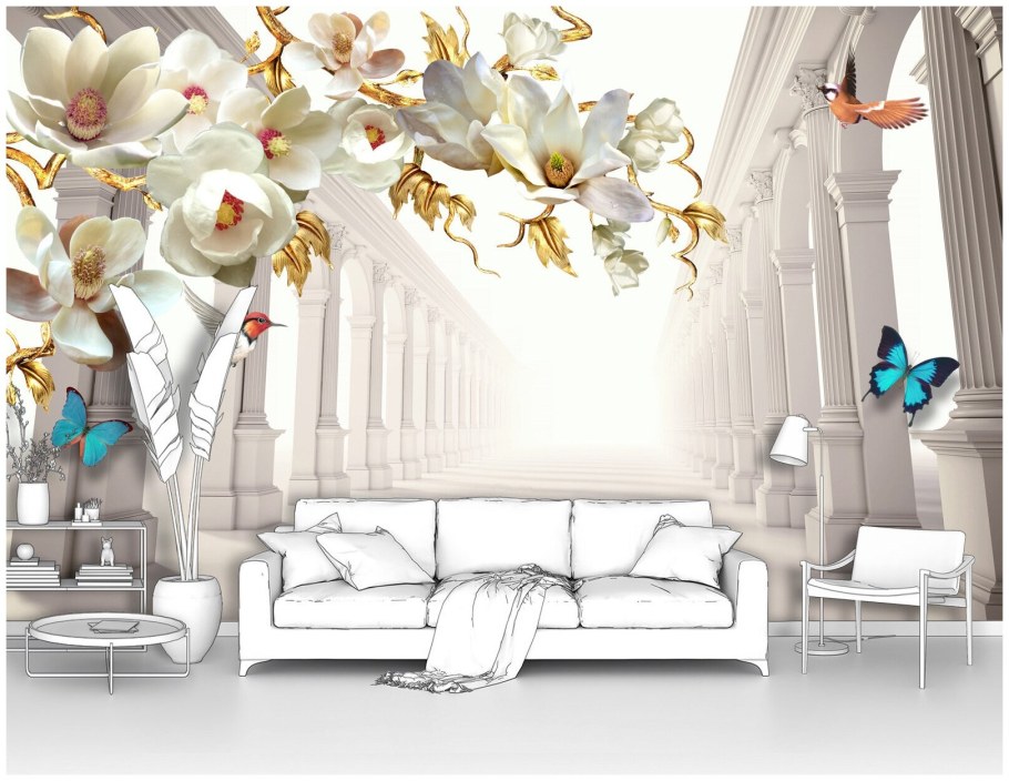 Фотообои флизелиновые горячего тиснения туннель с цветами