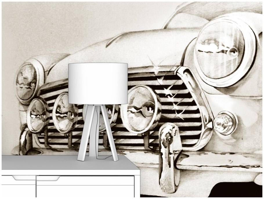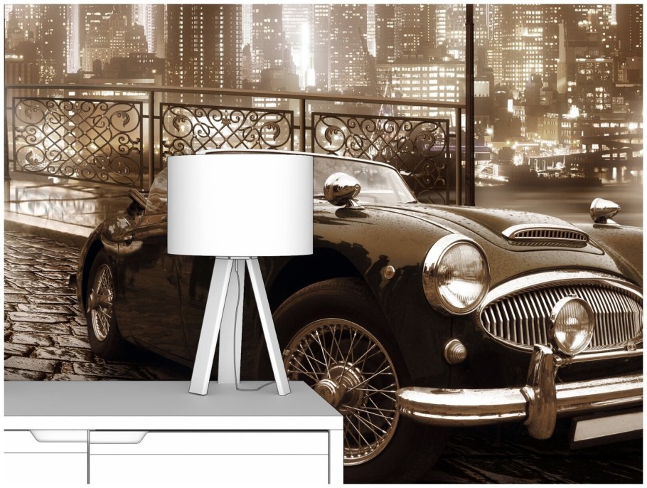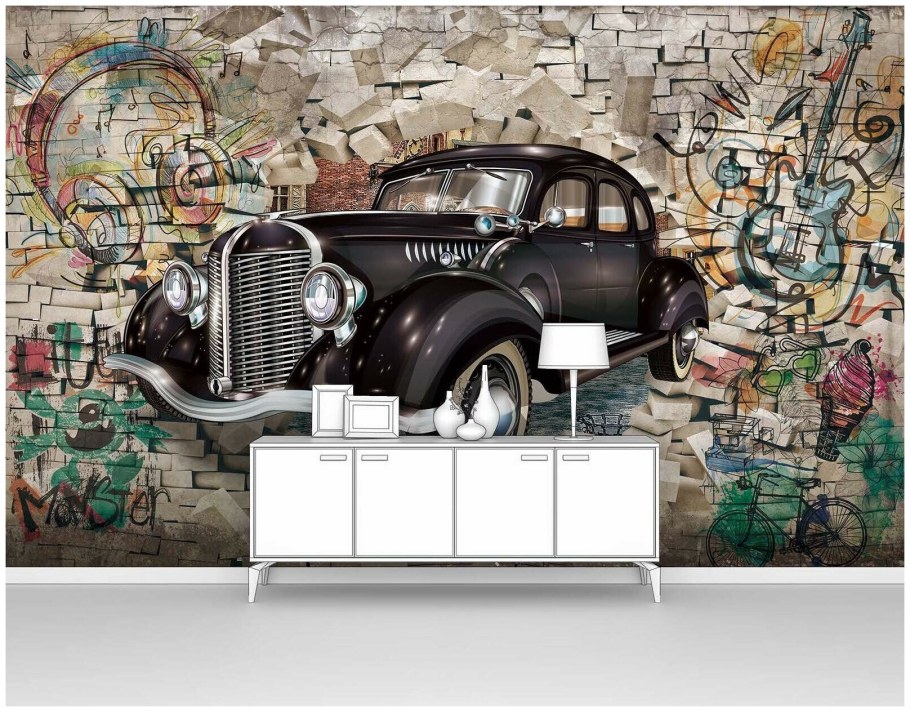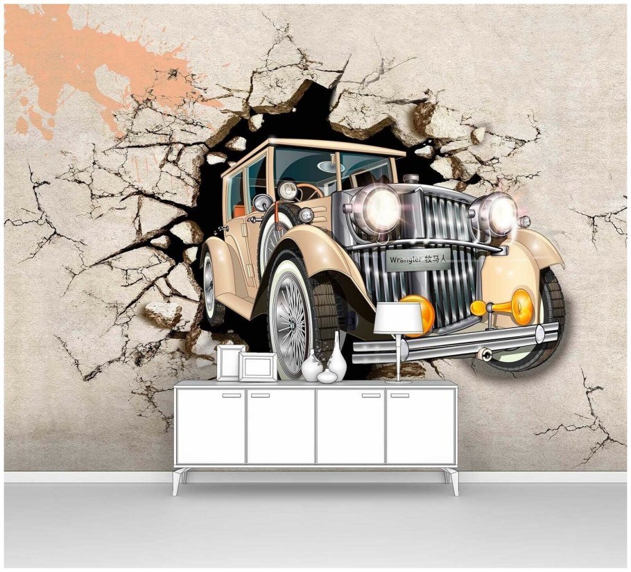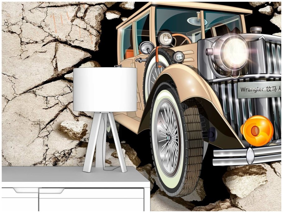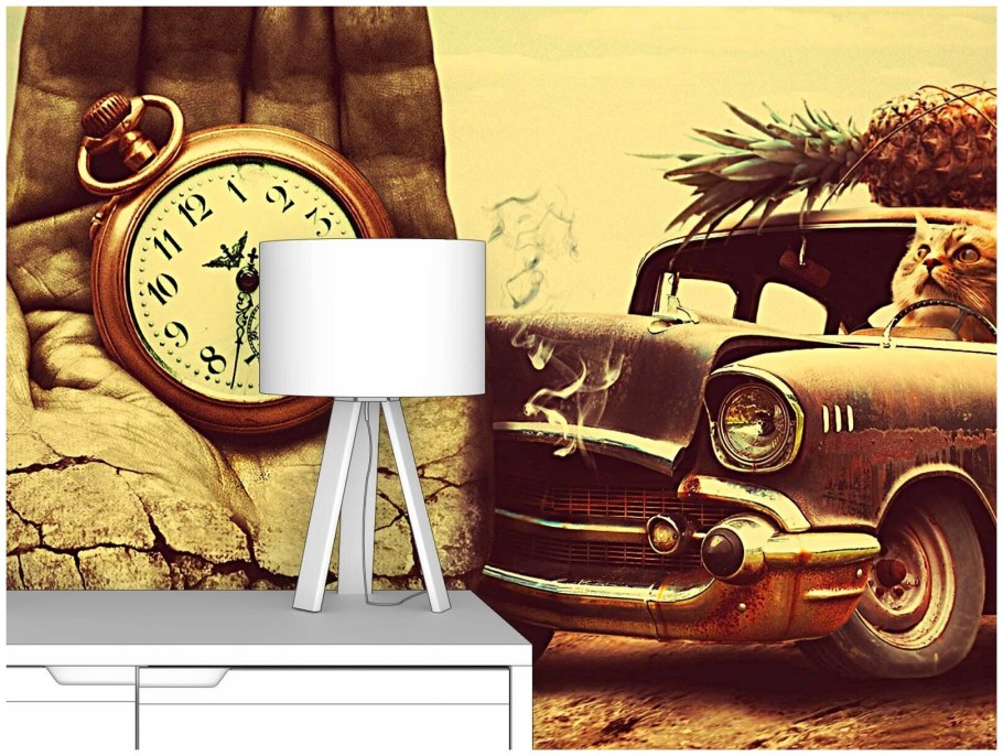 Ретро автомобиль врезается в бетонную руку времени фотообои
