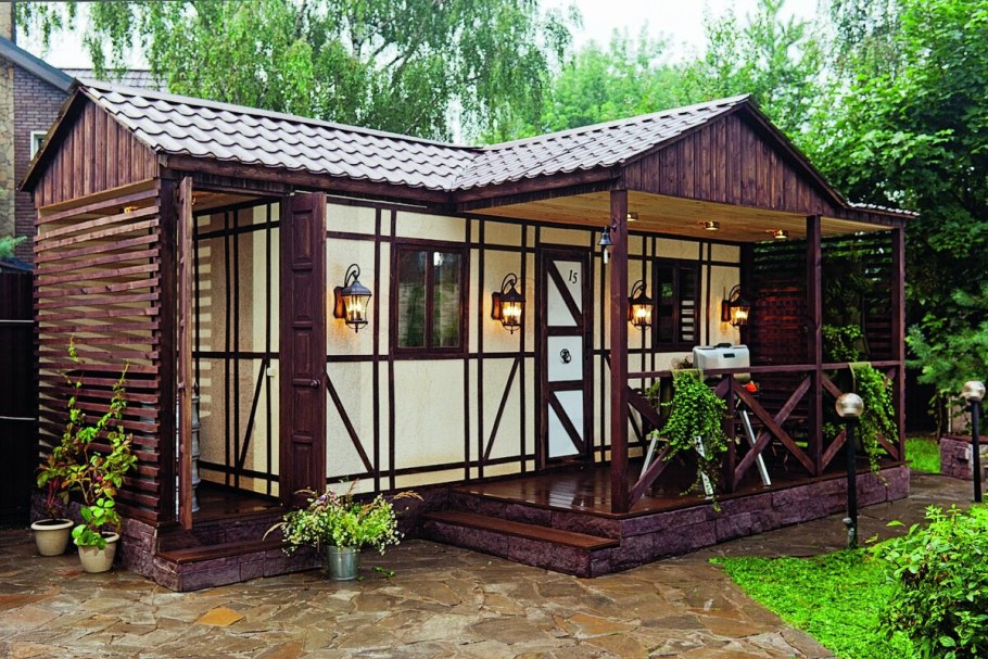 Бытовка Дачная 6x2,4 м с террасой 3x2 м