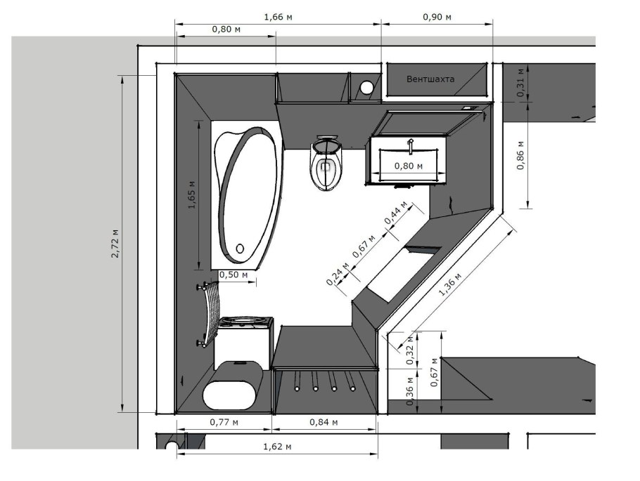 Эргономика ванной комнаты с душевой кабиной и стиральной машиной