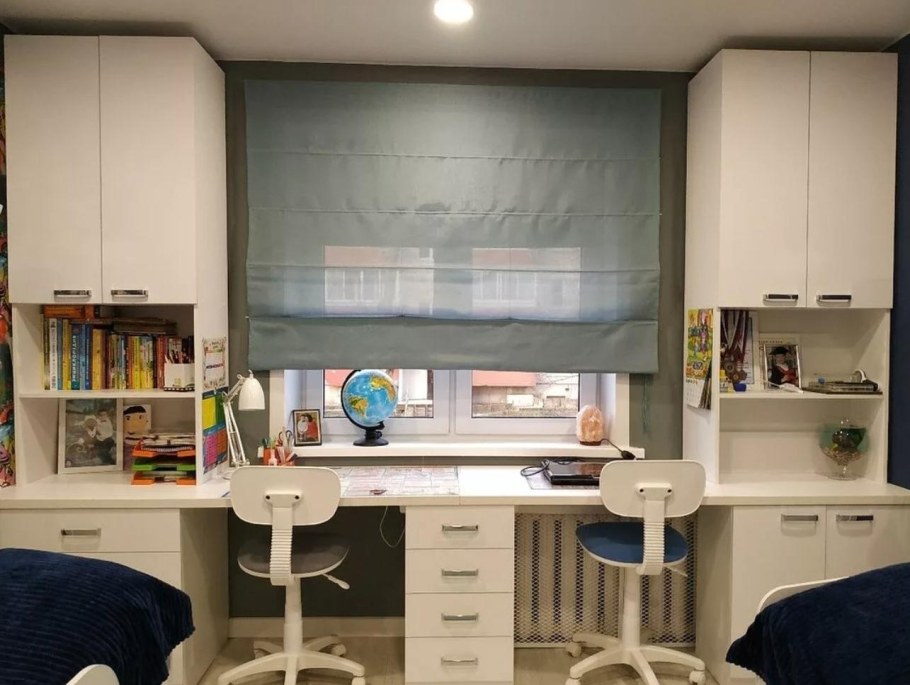 Встроенный стол у окна для школьника