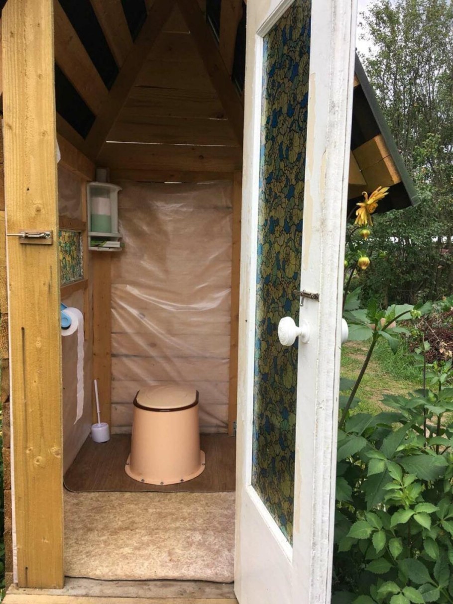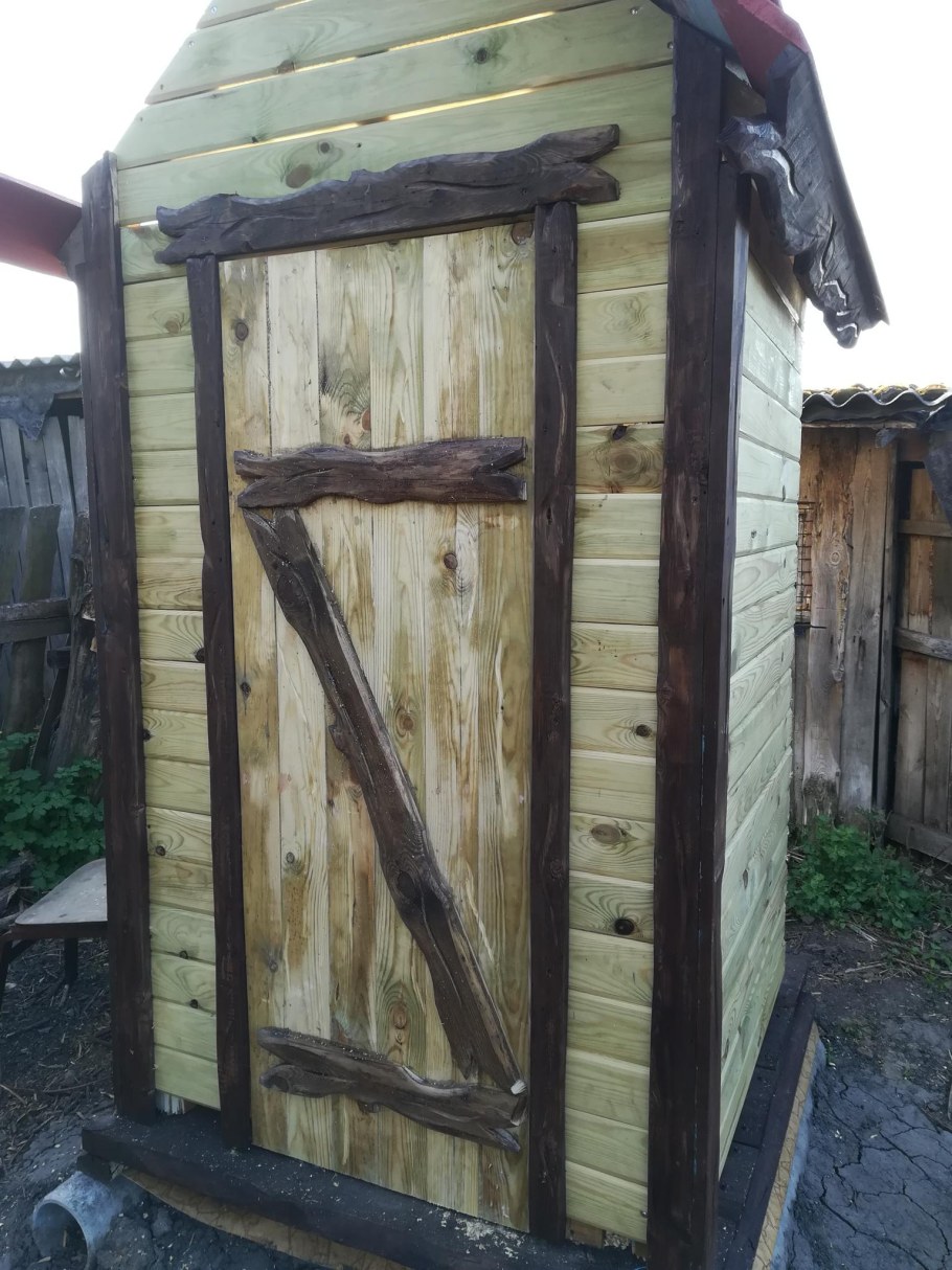 Садовый туалет бочонок а сзади. Него душевая на участке