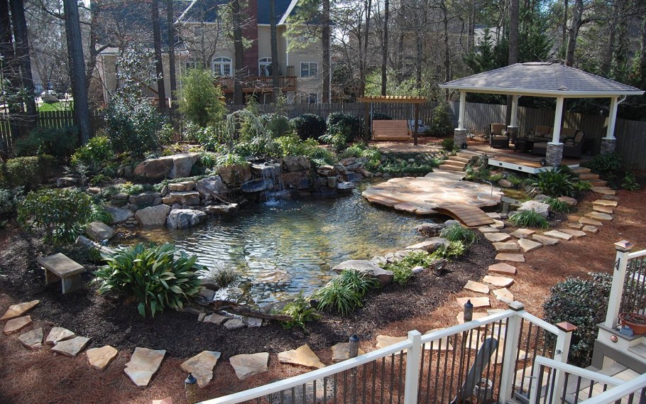 Красивый сад с прудом
