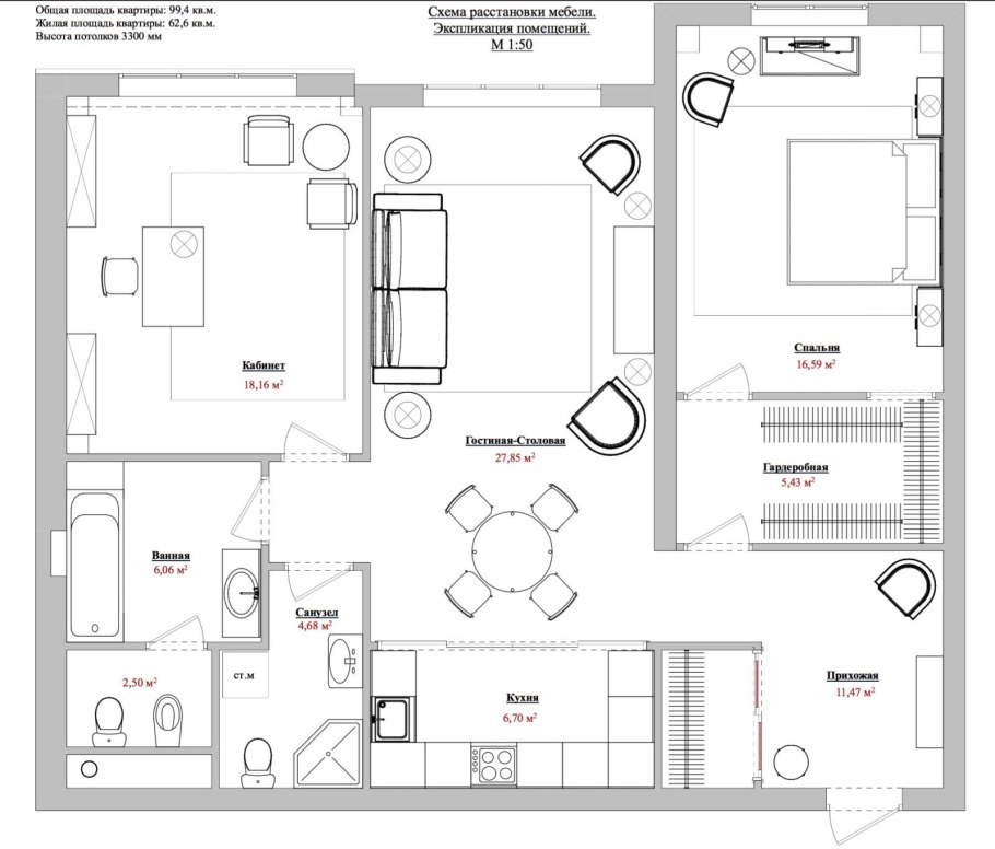 План расстановки мебели 3 комнатной квартиры