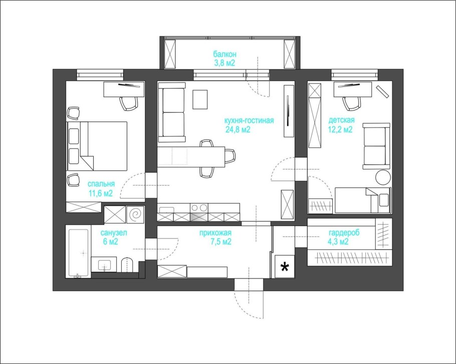 Перепланировка линейной двушки в евротрешку