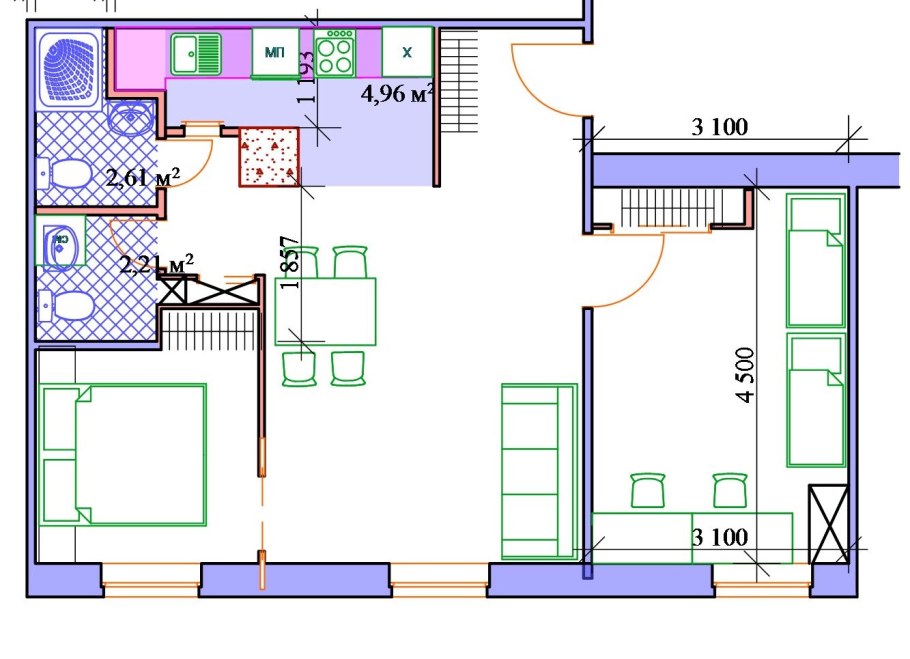 Планировка квартиры 44кв