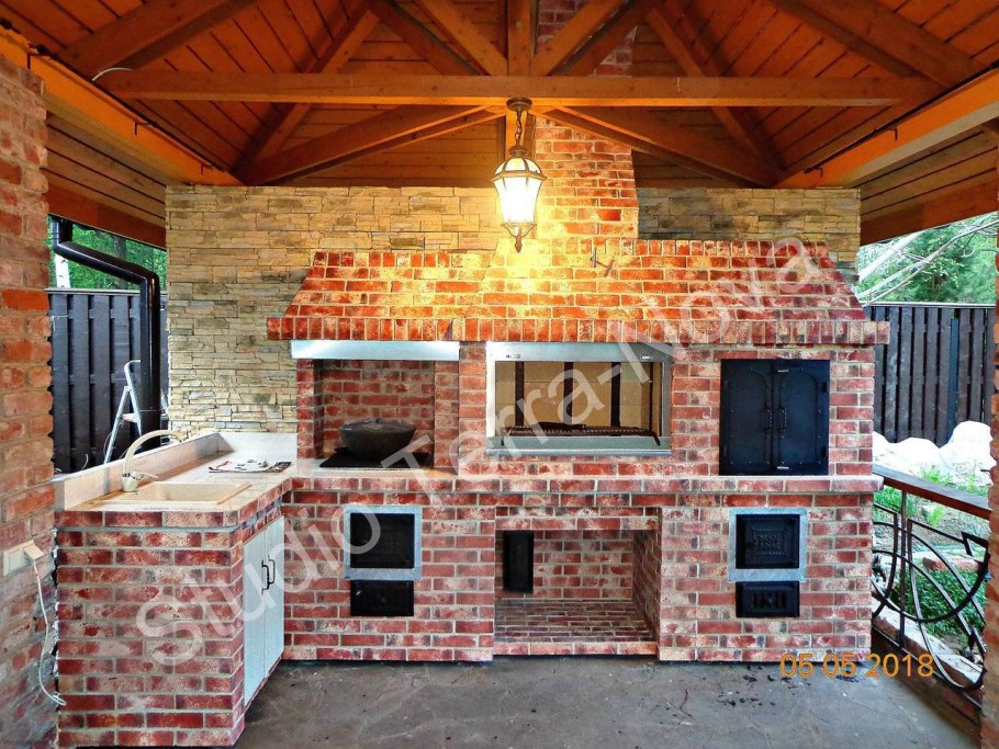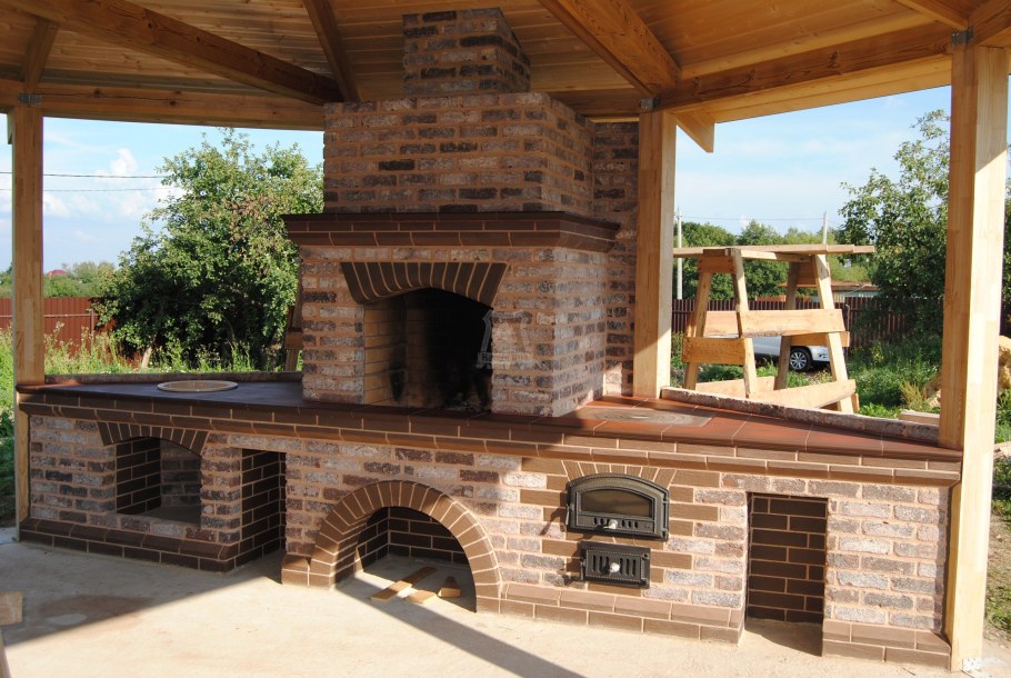 Кирпичные мангалы для дачи с крышей и печкой (67 фото)