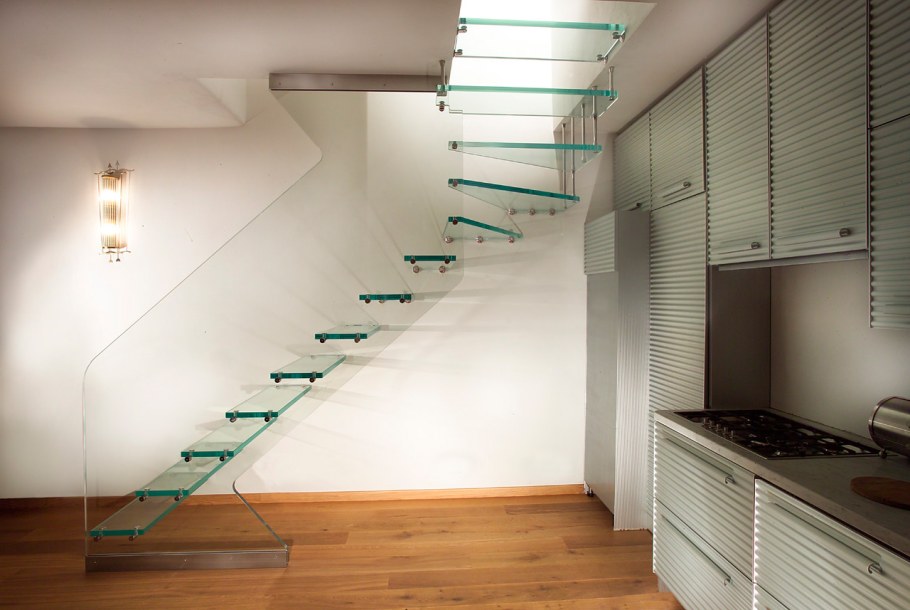 Стеклянная лестница в интерьере