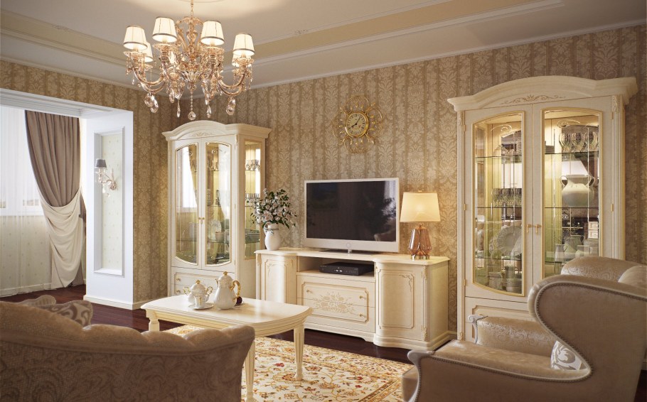Шкаф 3-дверный (без зеркал) для платья и белья Джоконда крем