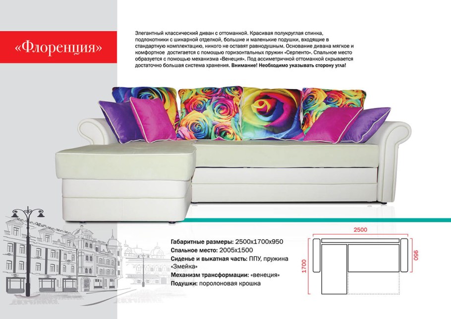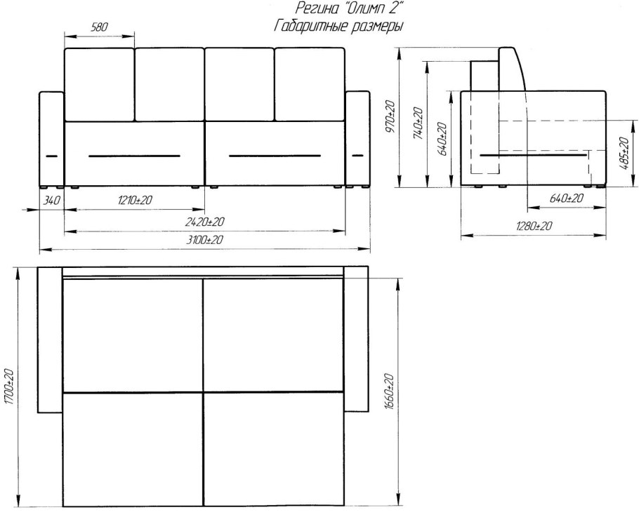 Диван прямой Олимп-1 пружинный блок с ножками-кубышками