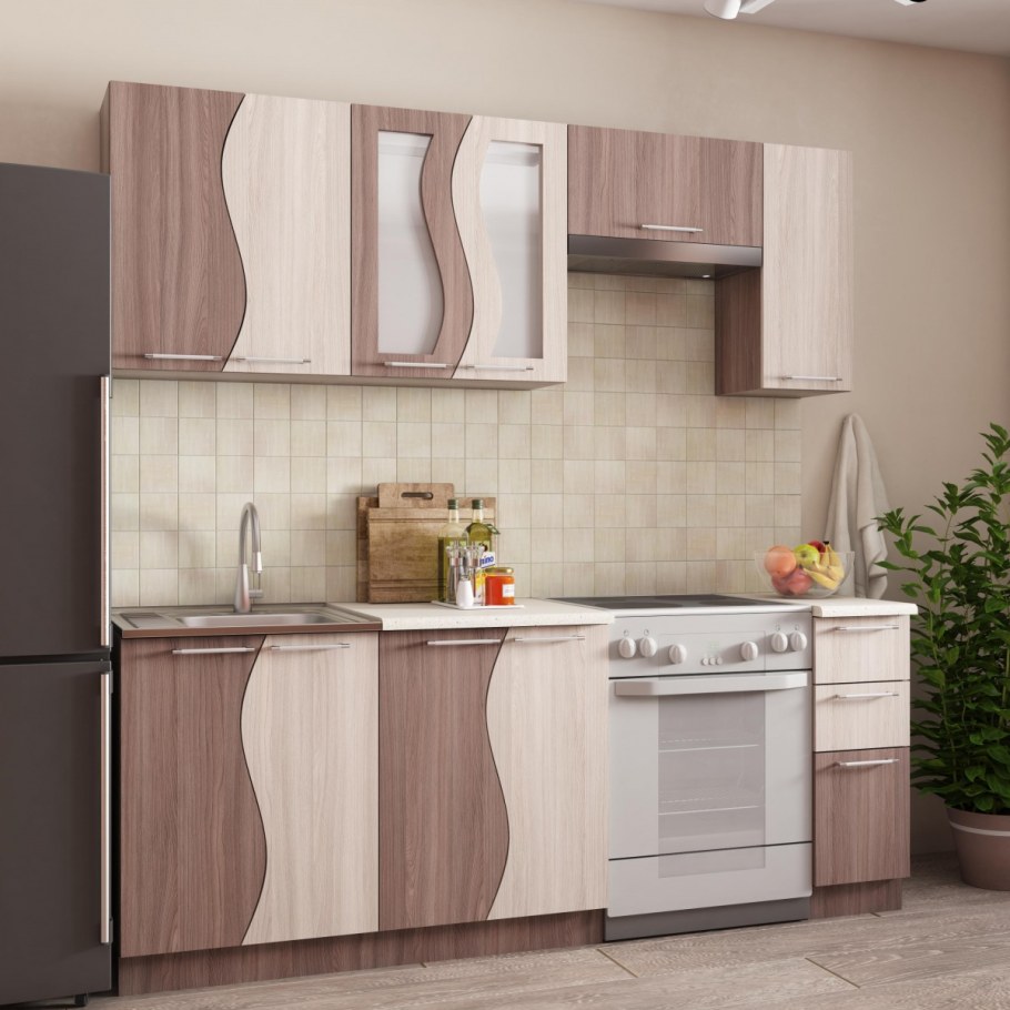 Кухонный гарнитур дачный 1,2м (1.ольха 2.беленый дуб)
