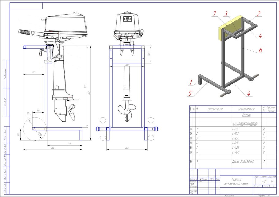 Тележка под Лодочный мотор 9.9 чертежи
