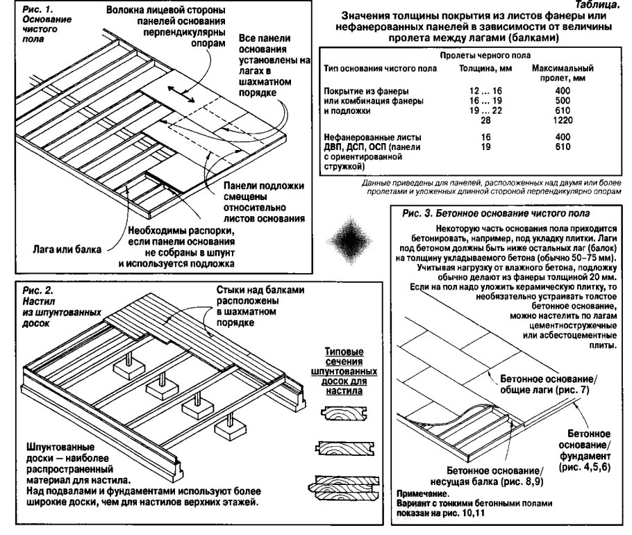 Схема устройства дощатых полов