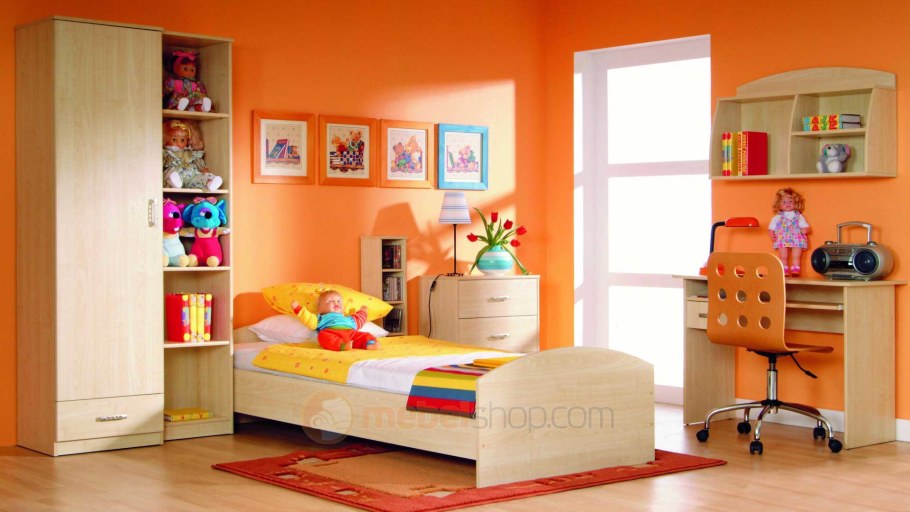 Рыжая мебель в детской