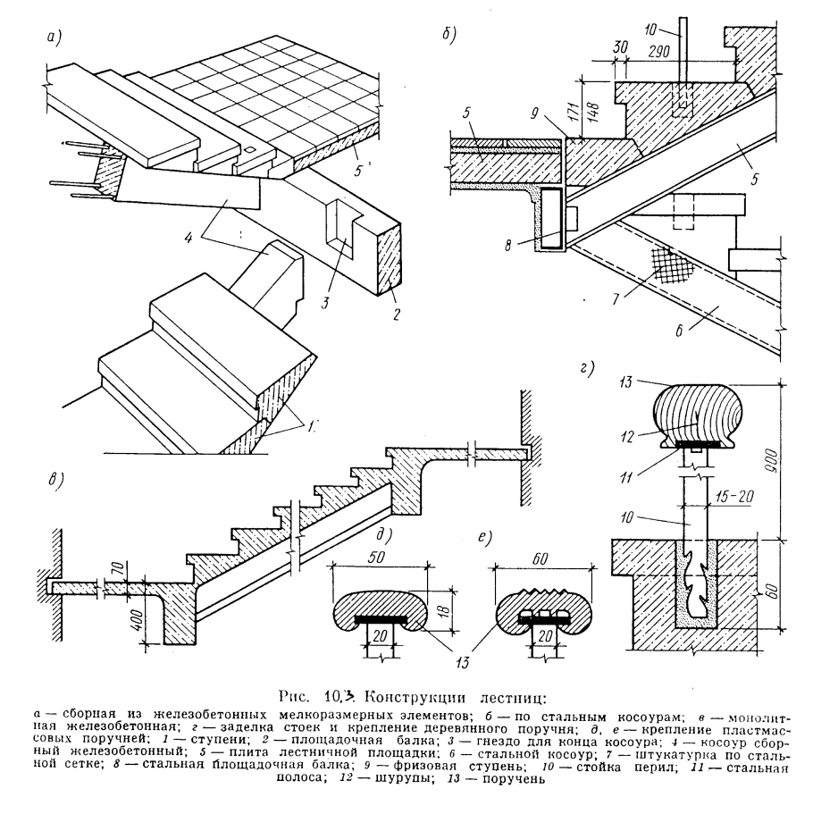 Лестницы из мелкоразмерных элементов, (чертёж).
