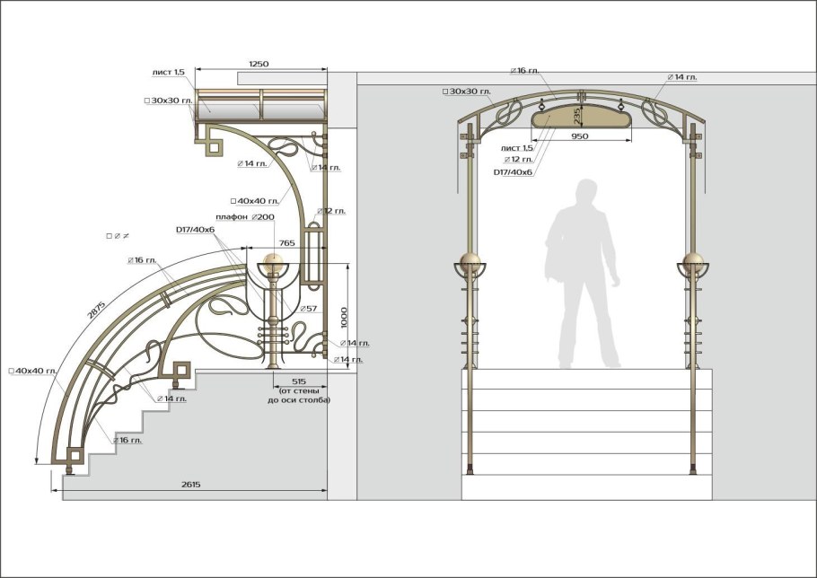 Чертеж крыльца из металла 3 ступени (67 фото)