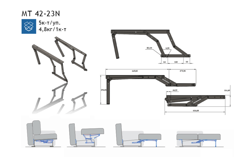 Механизм раскладывания дивана с выдвигающимся ящиком