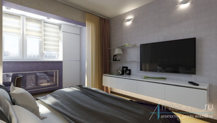 Интерьер спальни с лоджией п 44т