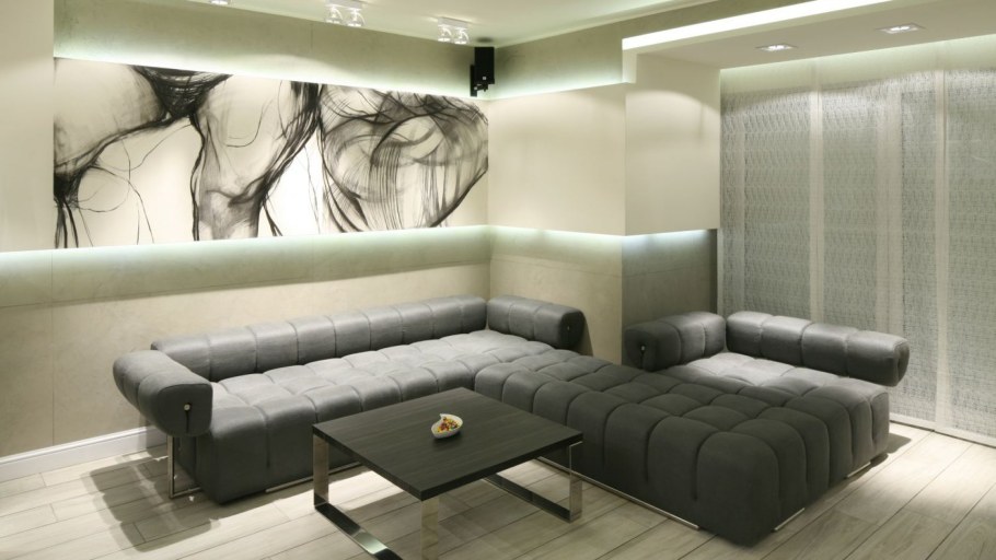Дизайнерская комната с угловым диваном