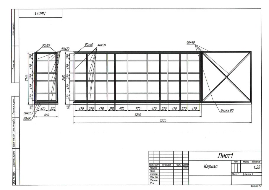 Ворота гаражные 2500х2500 с калиткой чертеж