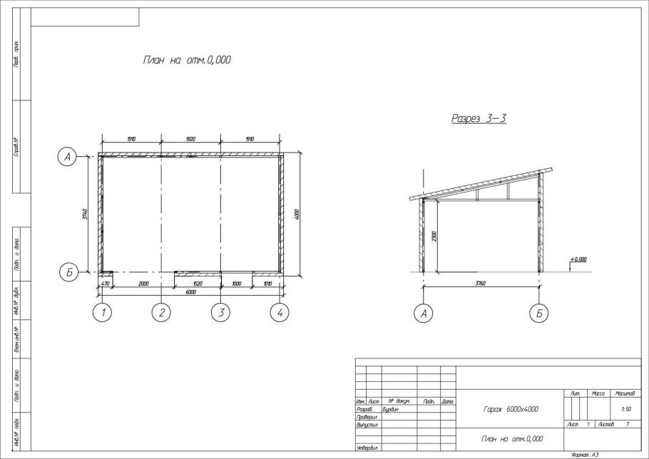 Чертеж гаражных распашных ворот с калиткой 4х4 м
