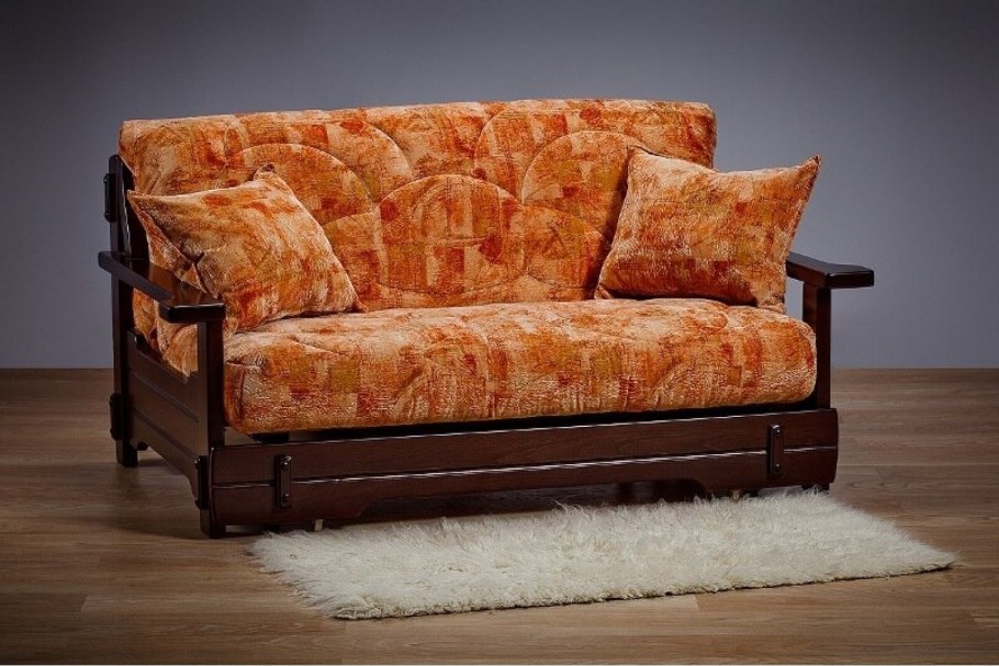Диван аккордеон с деревянными подлокотниками 140