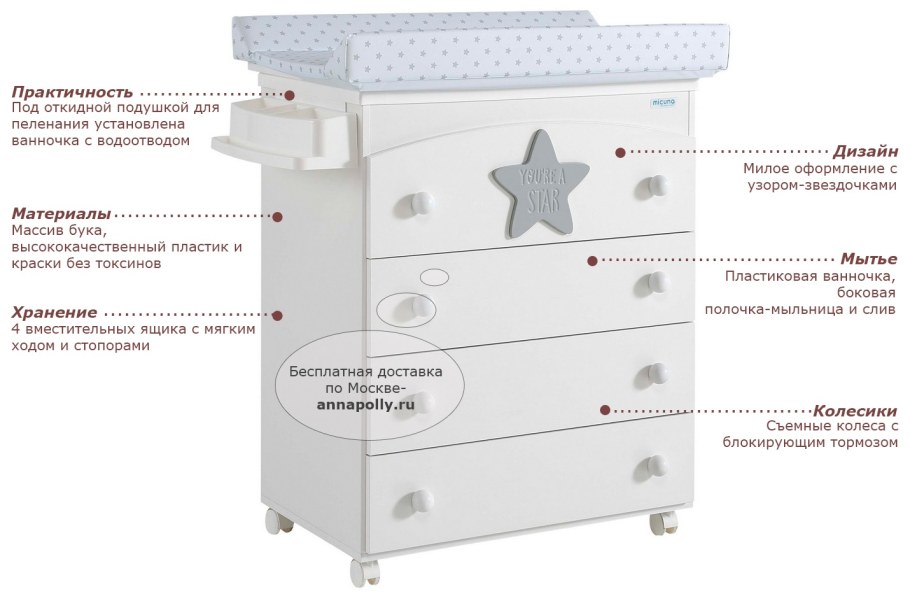 Пеленальный комод Bambolina Firenze/Divina Luxe cristallo