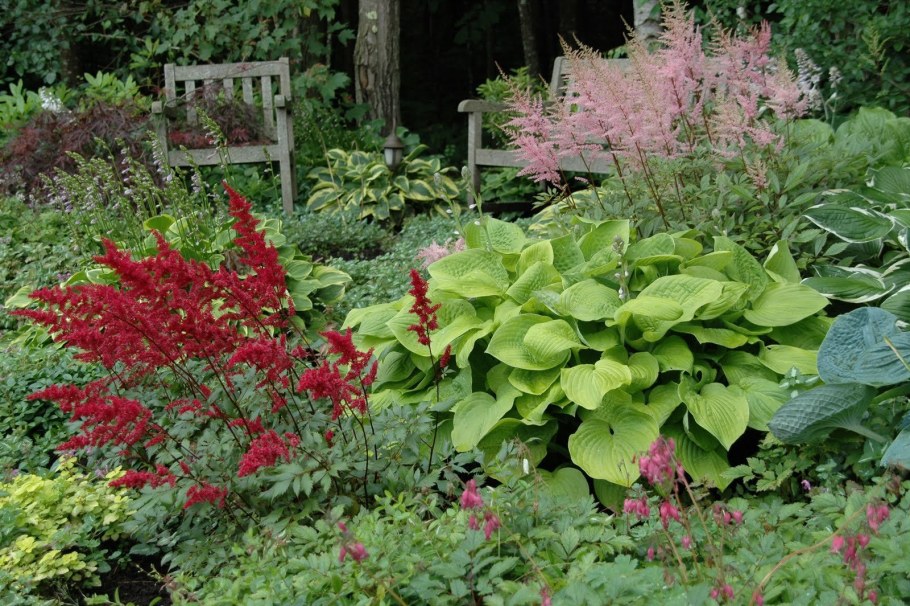 Астильба в долине реки клена частный сад в Саутленд новая Зеландия
