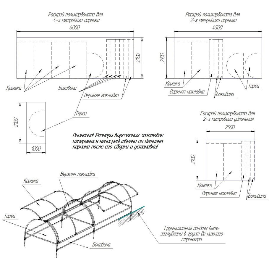 Схема сборки теплицы из поликарбоната 6м 3м