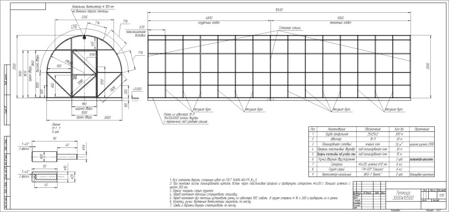 Капелька теплица чертеж сборки