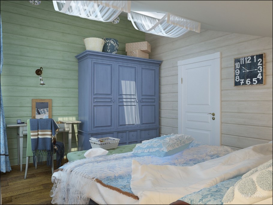 Спальни в бревенчатом доме в стиле Кантри,Прованс