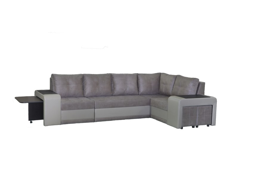 Квадро-2 угловой диван с баром, с пуфиками и столиком в подлокотниках