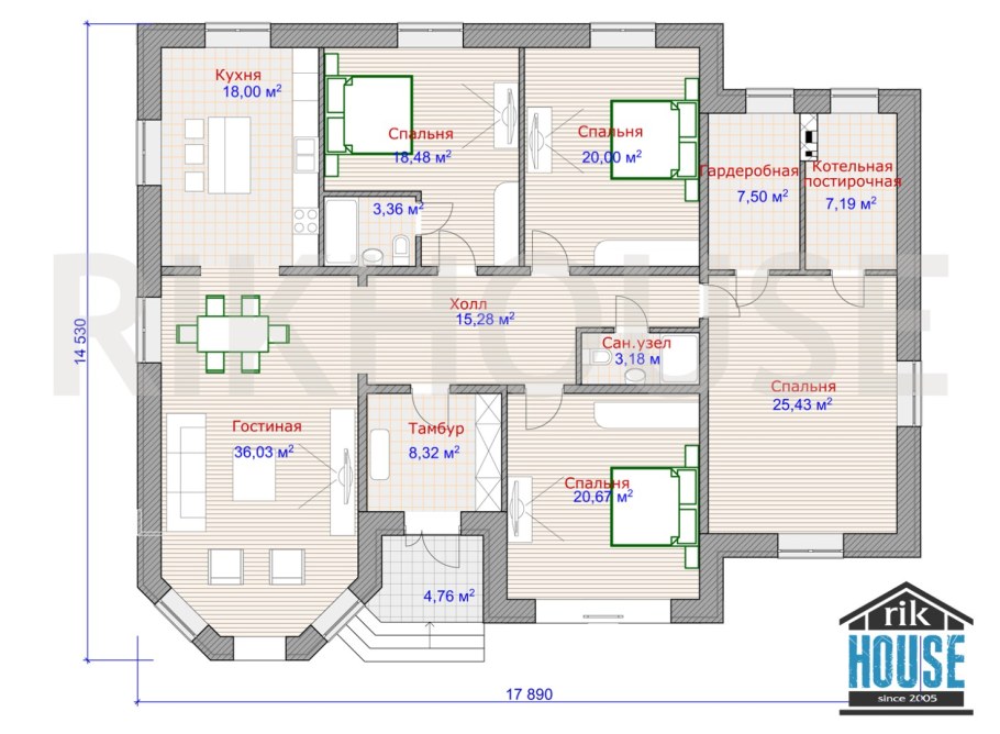 Планировка одноэтажного дома 150 кв.м с 3 спальнями