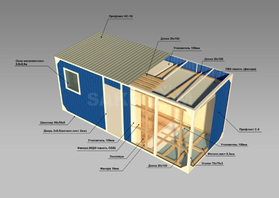 Чертежи блок-модулей зданий из сэндвич-панелей