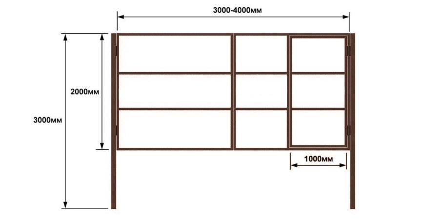 Схема калитки из профильной трубы 2.5м высота