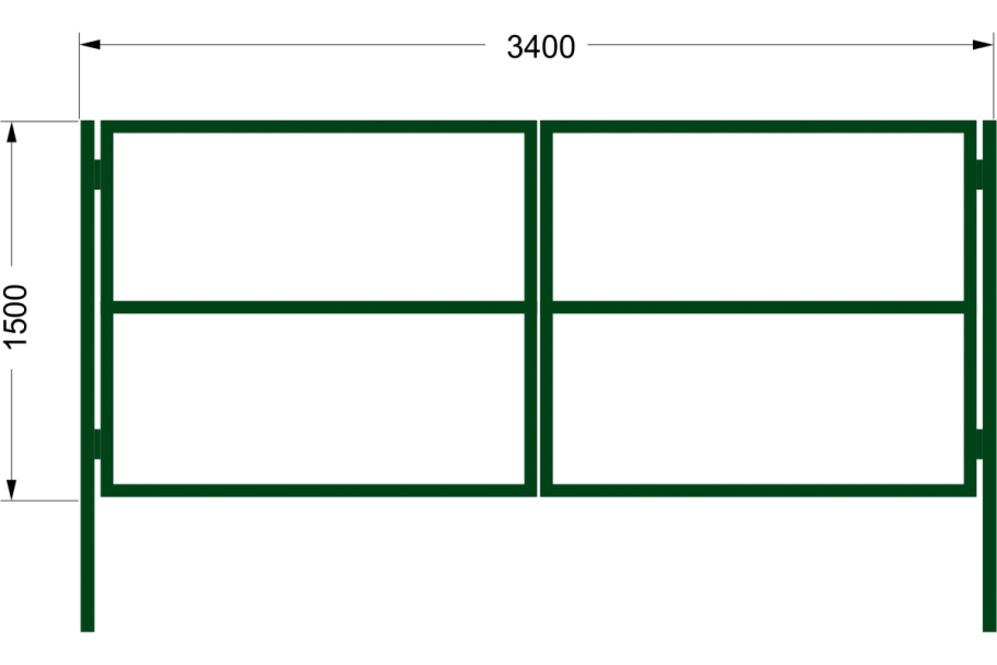 Ворота "каркас" н 1,5м l 3,4м, с 2 столбами 2,3м ППК RAL 6005