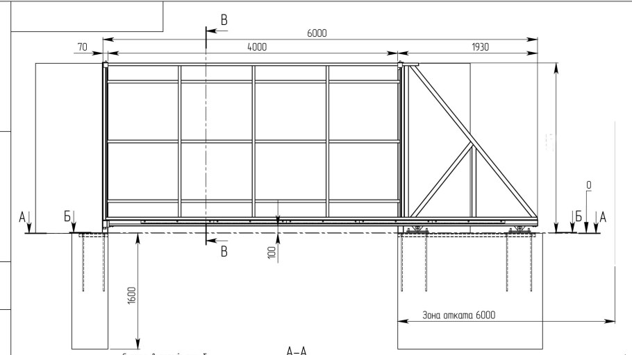 Чертеж гаражных распашных ворот с калиткой 4х4 м