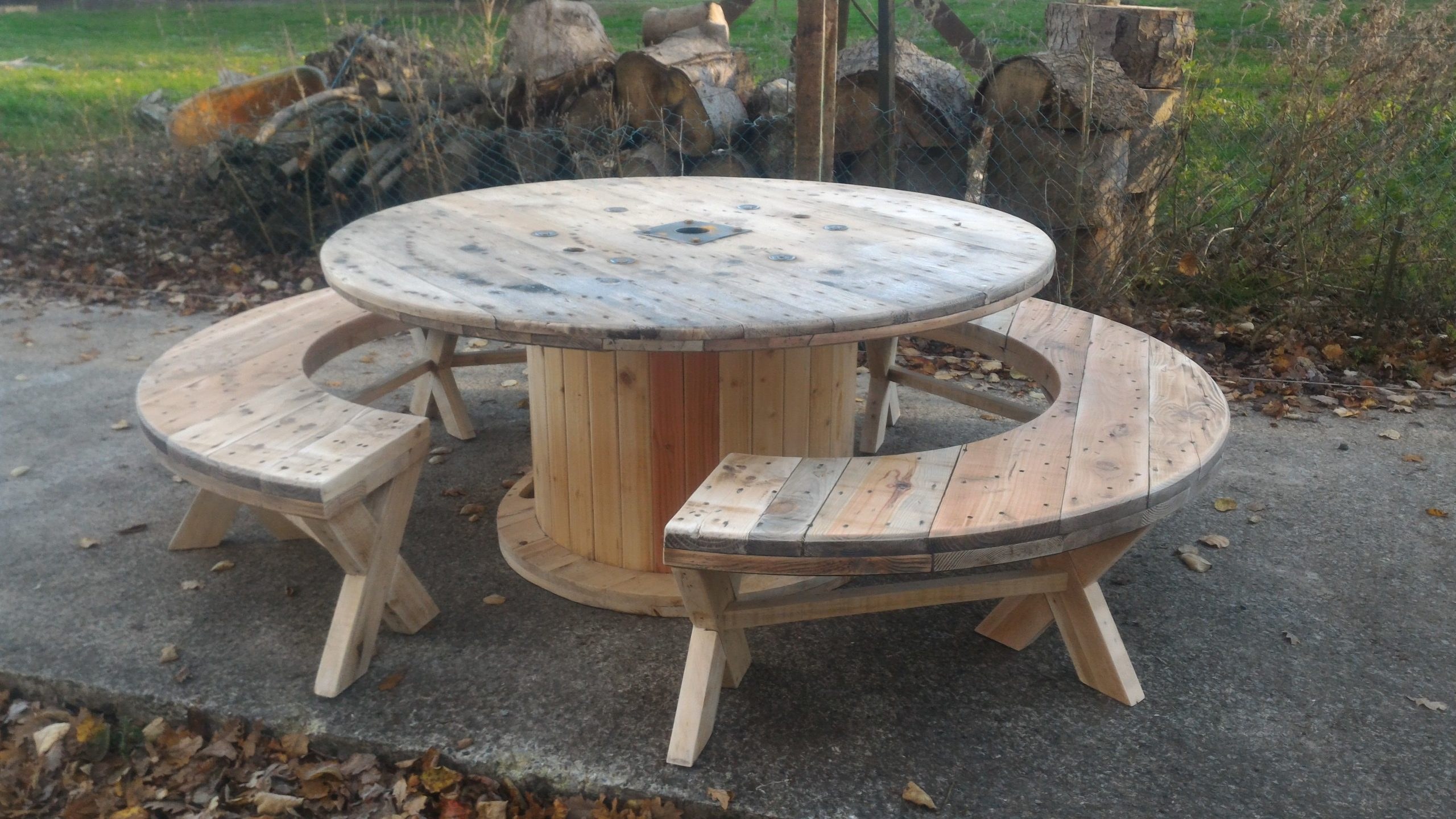 Стол из деревянных кругов от катушек