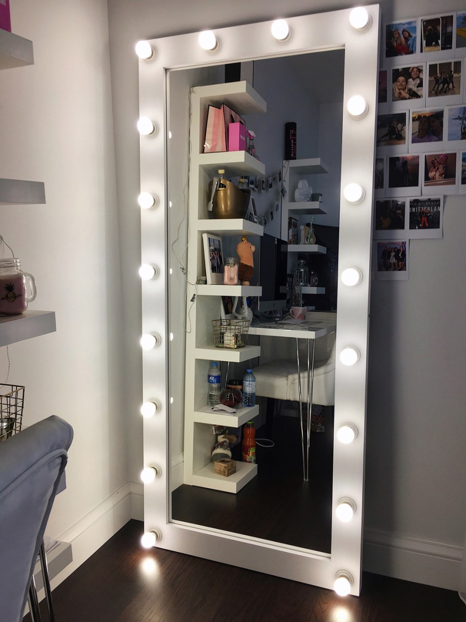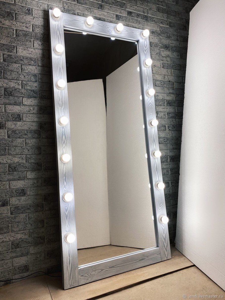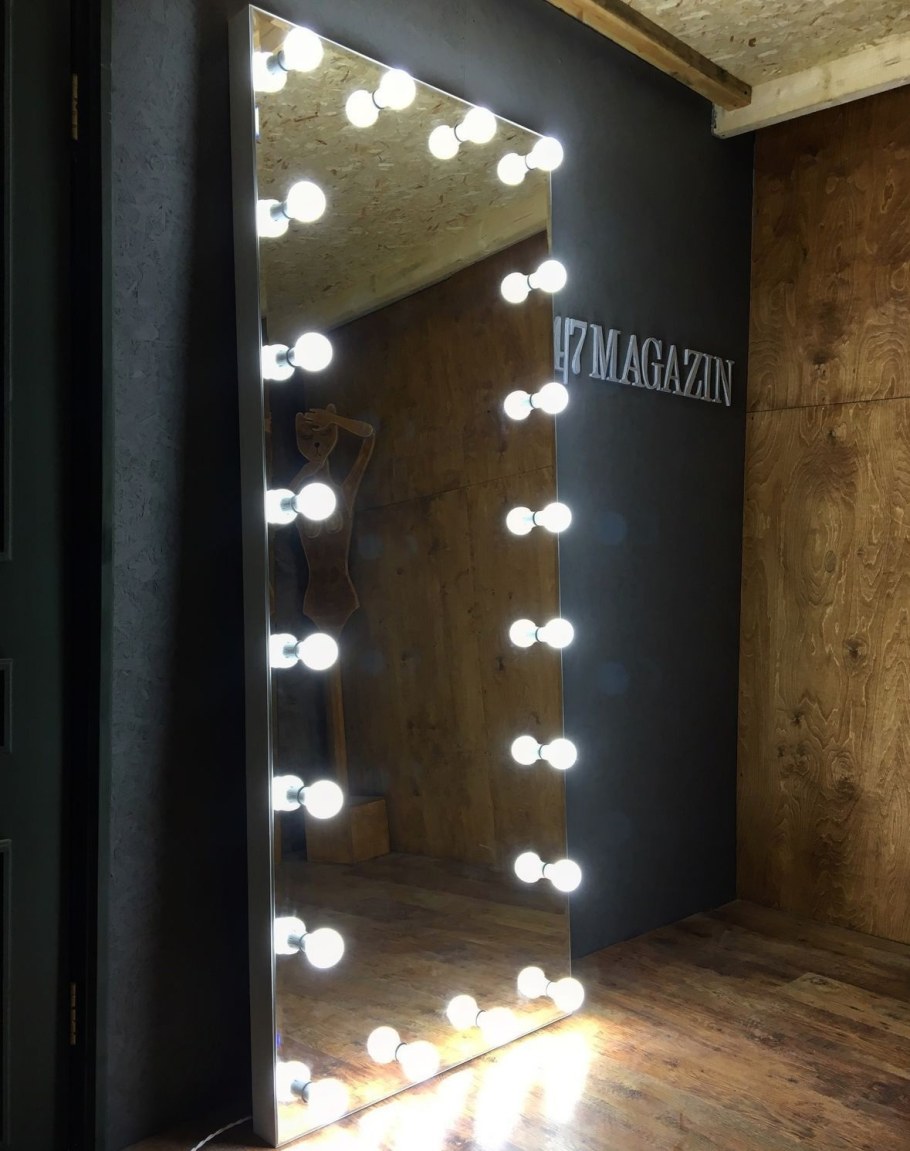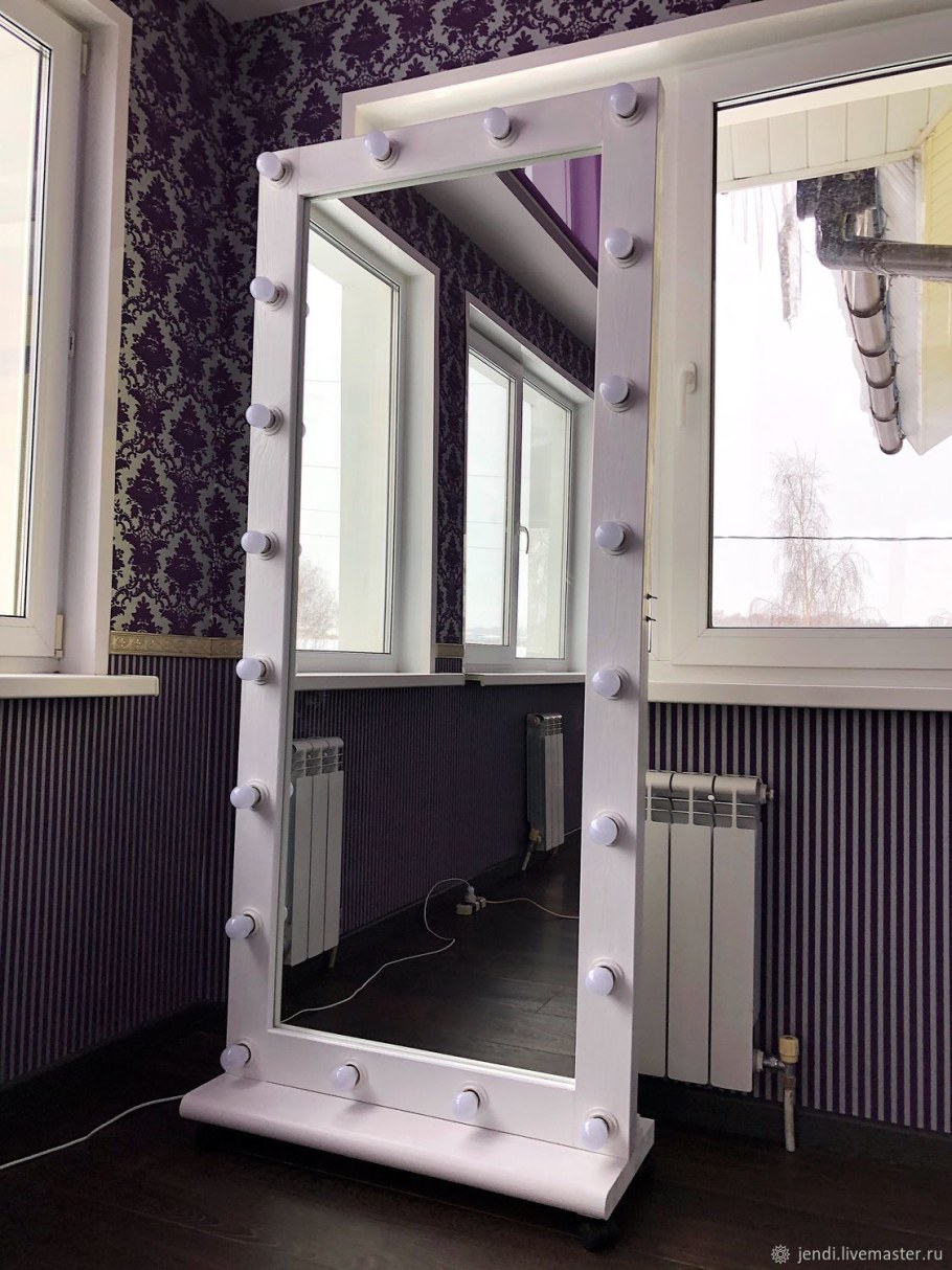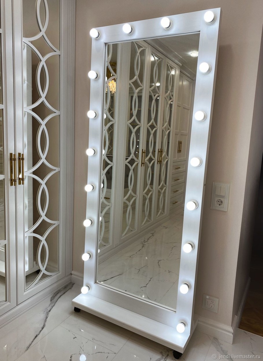 Гримерное зеркало с лампами 180х80 на колесах бело