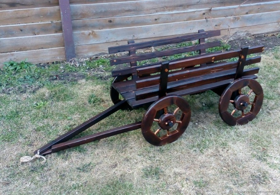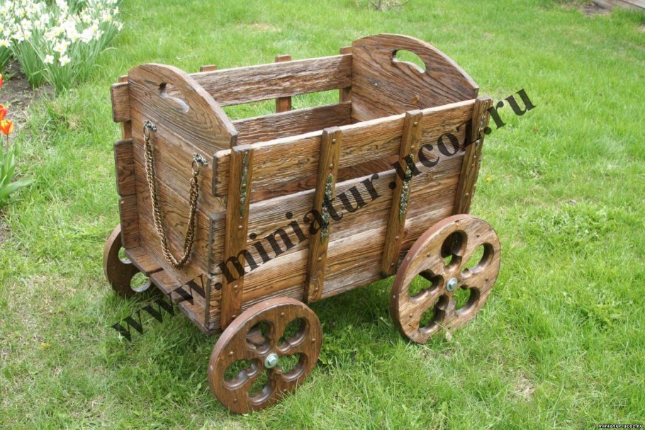 Телега-подставка металлическая с деревом 50 28 31 см Rd-58846