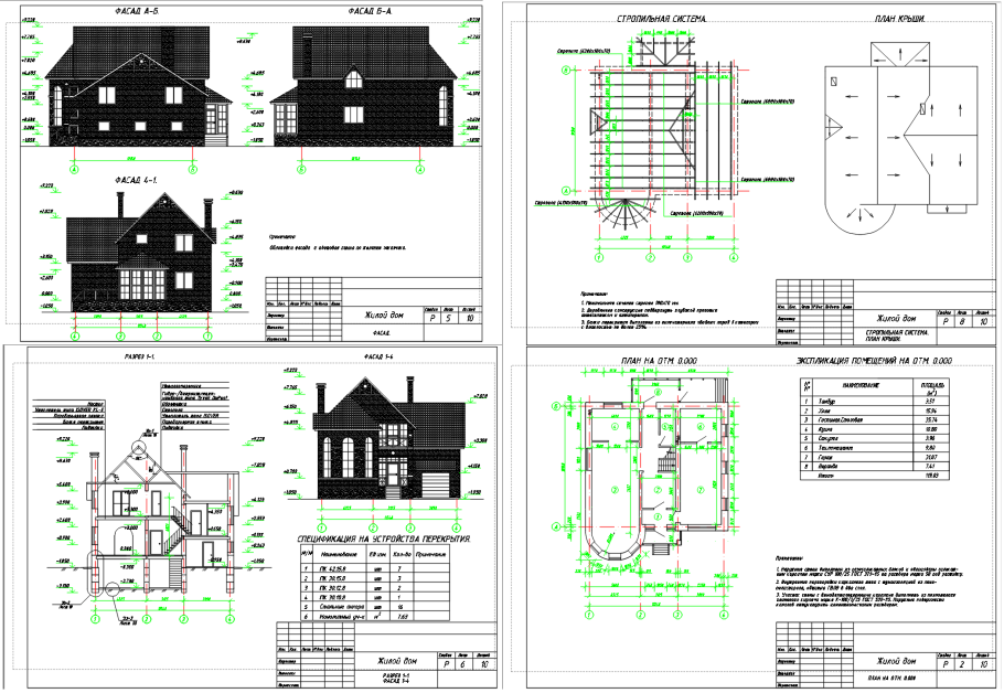 План фасад разрез здания готовый чертеж Инженерная Графика
