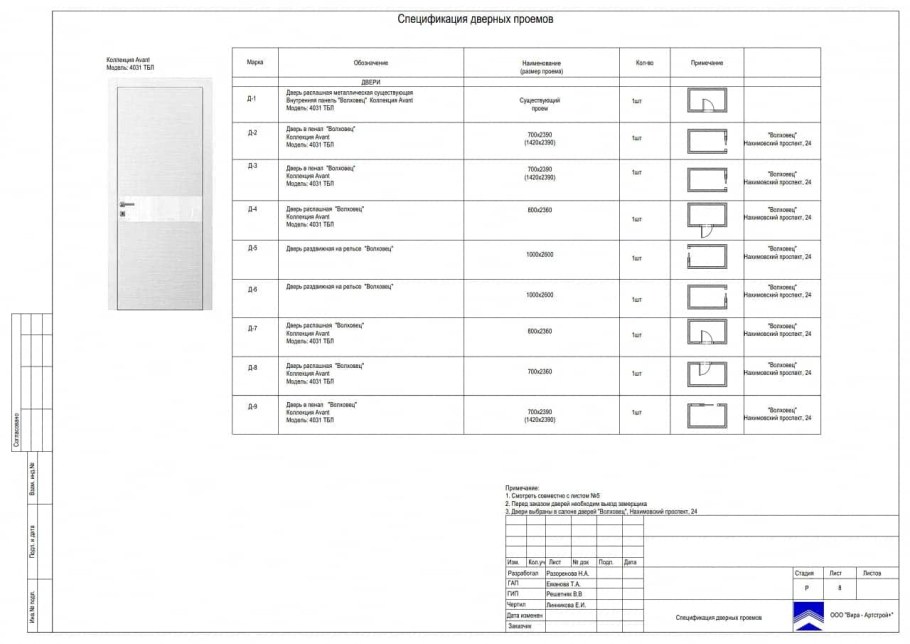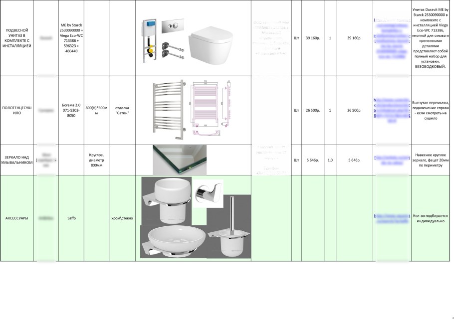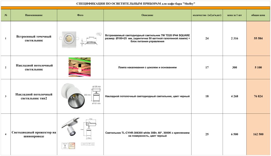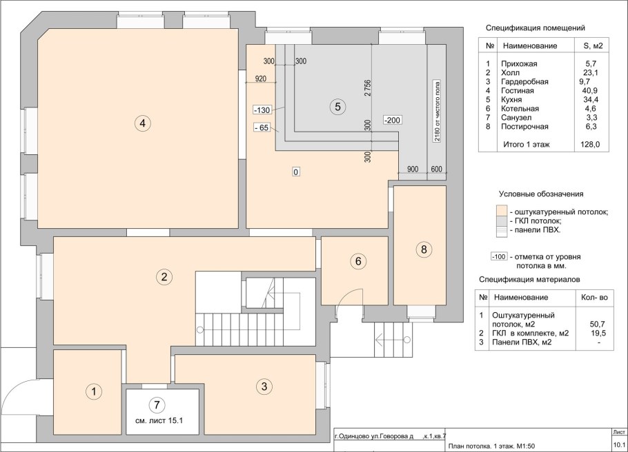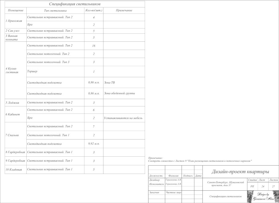 Ведомость отделочных материалов для чистовой отделки интерьера