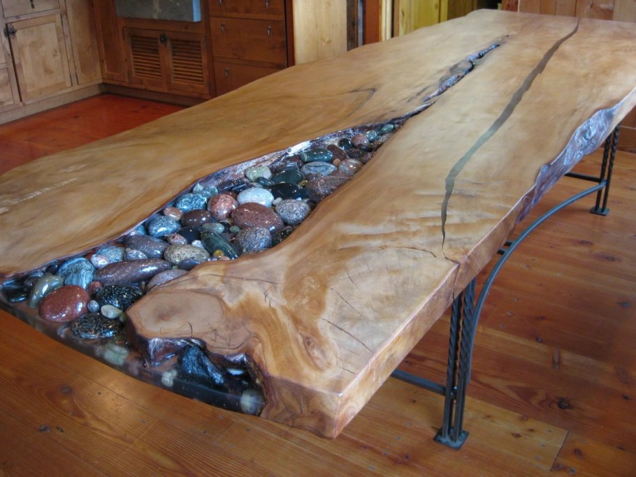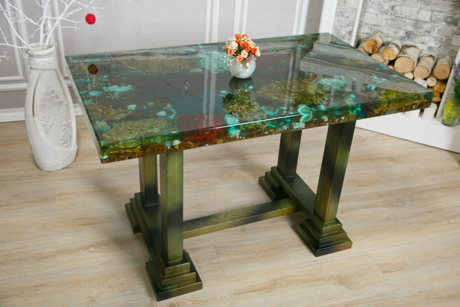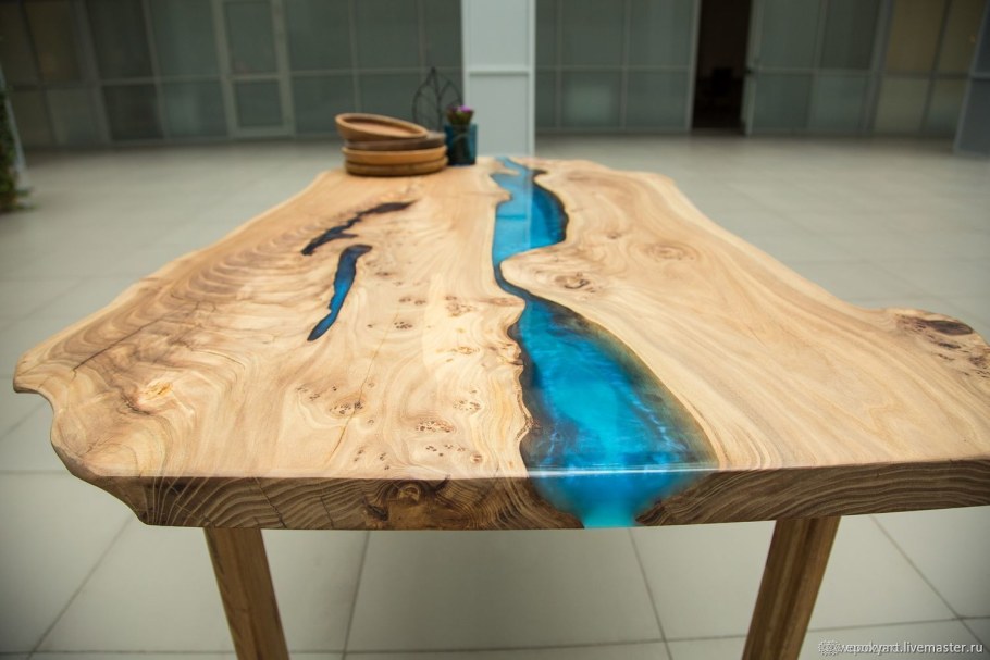 Стол залитый эпоксидной смолой (65 фото)