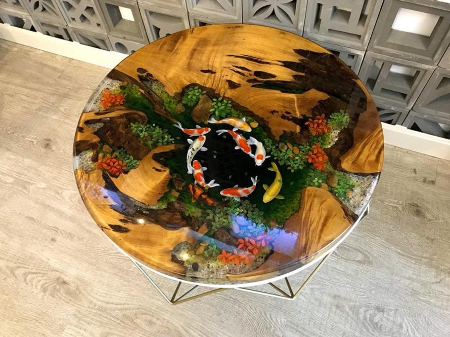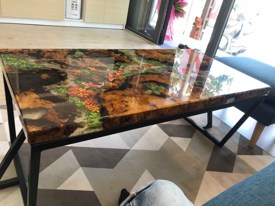 Стол из эпоксидной смолы с рыбами