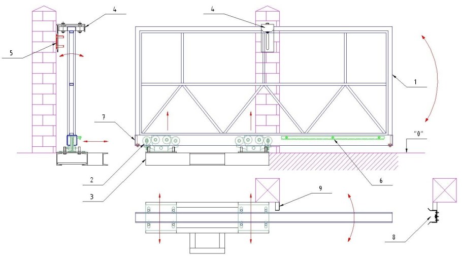 Откатные ворота 4000мм x 2000мм чертеж труб